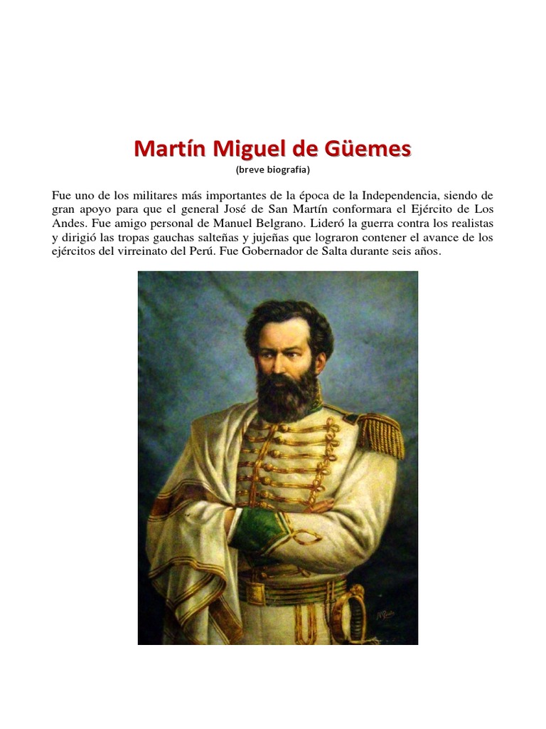 Martín Miguel De Güemes Biografía Resumida Para Primaria : Dia Nacional De La Libertad Latinoamericana Abc Gob Ar : Todo aquel pueblo concurrió en masa a su entierro en la capilla de chamical.. Y por los secretarios juan josé paso y mariano moreno. Cabeza promotora y pensante de sus. Martín güemes nació en salta el 8 de febrero de 1.785, pertenecía a una familia noble y adinerada. Estudió en buenos aires, en el real colegio de san carlos. Fue uno de los militares más importantes de la época de la independencia, siendo de.